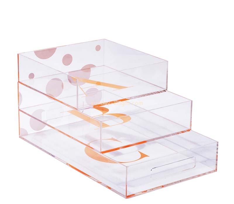 Introducing our custom wholesale clear acrylic stackable organizer with pattern printing. Perfect for both retail and personal use, these organizers are designed to be both functional and stylish. Made from high-quality, durable acrylic, they offer a clear view of contents, making it easy to organize and access items. The stackable design maximizes space, while the custom pattern printing adds a unique and personalized touch. Ideal for cosmetics, office supplies, and small household items, these organizers blend seamlessly into any decor. Available for bulk orders, our organizers can be tailored to meet specific design needs, ensuring they stand out in any setting.