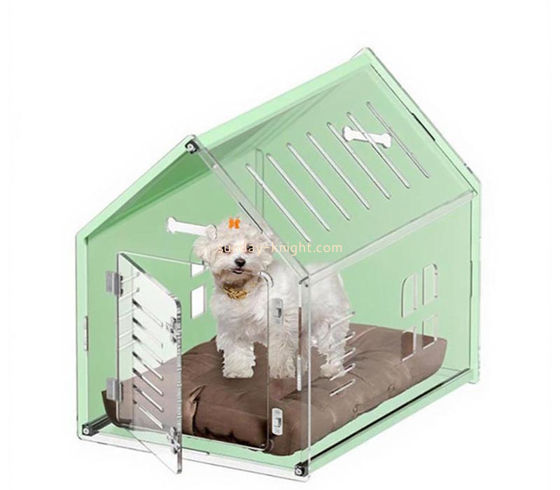 Custom translucent green acrylic house-shaped dog pet crate — uniquely designed to provide a safe, comfortable, and stylish space for your pet. Crafted from durable, high-quality acrylic, this modern crate doubles as a functional piece that blends with your home décor. Your shipping cost includes all taxes and fees, ensuring smooth and worry-free delivery to the US, Europe, and select countries in Asia.