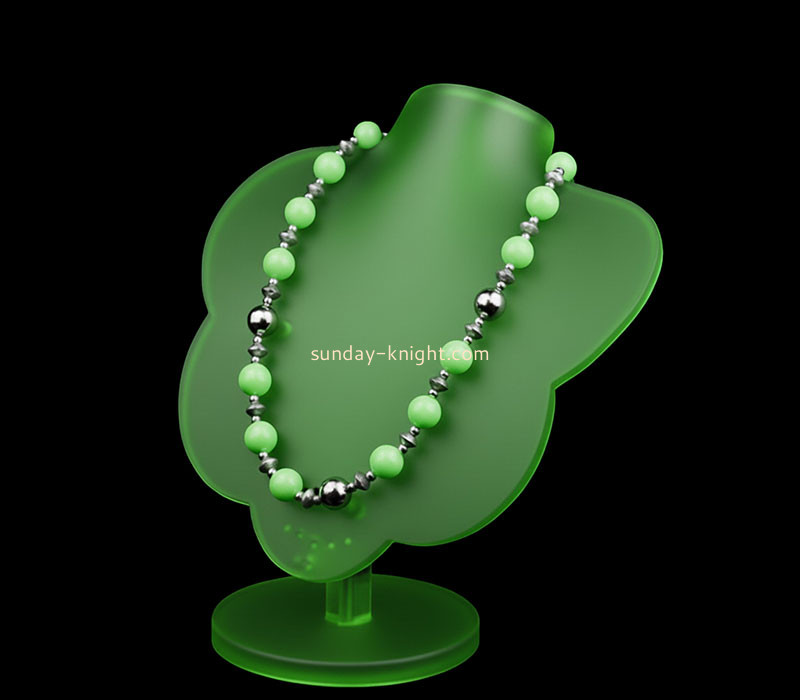 Custom translucent green acrylic necklace bust display prop — designed to elegantly showcase necklaces with modern style and vivid color. Crafted from high-quality acrylic, it features a smooth finish and excellent transparency that enhances the beauty of your jewelry. Perfect for retail shops, trade shows, and showroom displays. Each piece can be customized in size, shape, and hue to suit your branding. Hassle-free ordering with duties covered — Sunday Knight ensures seamless, door-to-door global delivery.