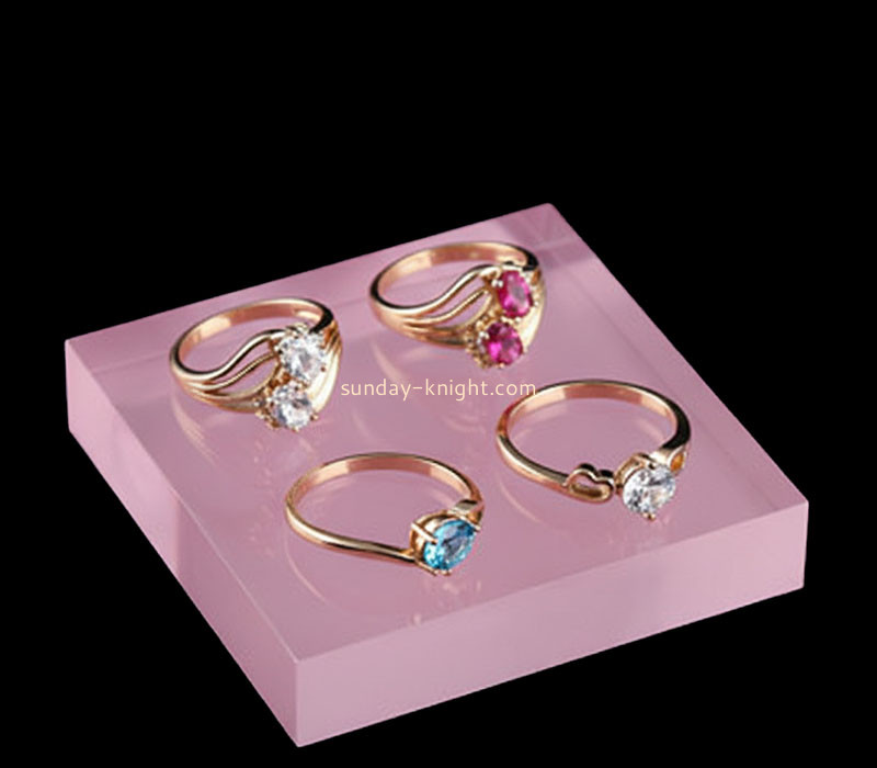 Custom translucent pink acrylic jewelry rings display block — a chic and modern way to showcase your rings with elegance and color. Made from high-quality acrylic, it offers excellent clarity, smooth edges, and a radiant pink glow that enhances every piece of jewelry. Ideal for retail stores, trade shows, and showroom displays. Sunday Knight provides full customization in size, shape, and color to meet your needs. Door-to-door delivery, tax paid — simple, transparent, and worry-free service worldwide.