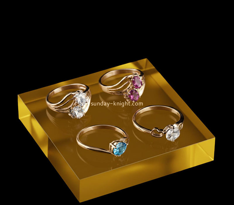 Custom translucent yellow acrylic rings display block — designed to bring brightness and sophistication to your jewelry presentation. Crafted from durable, high-quality acrylic with a smooth, polished finish, it beautifully enhances the shine of each ring. Perfect for retail shops, exhibitions, or personal collections. Sunday Knight specializes in fully customizable acrylic displays, offering tailored sizes, shapes, and colors to match your brand style. All-in delivery, no tax — enjoy effortless, reliable global service from factory to your door.