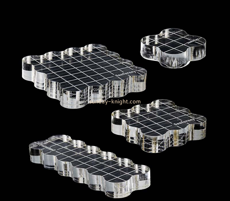 Custom acrylic wavy shape stamping blocks are crafted for creative and decorative stamping applications. Made from premium clear acrylic, they provide excellent visibility for precise placement and alignment. The unique wavy shape adds artistic flexibility, allowing users to create dynamic patterns and textures. With smooth polished edges and a sturdy, crack-resistant structure, these stamping blocks ensure even pressure and clean impressions. Ideal for crafts, scrapbooking, card making, and DIY projects, they can be customized in size, thickness, and shape.