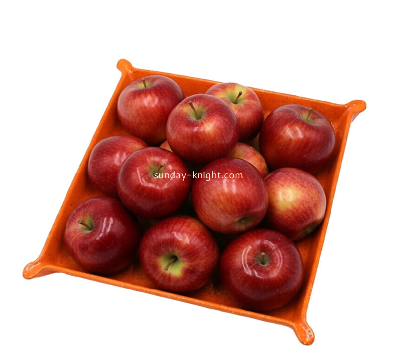 Custom orange acrylic fruit serving tray, bright and stylish for home, parties, cafes and hotel use. Made of high-quality clear acrylic, it is durable, shatter-resistant and easy to clean. Its smooth surface and stable base safely hold fruits, snacks and desserts. Color, shape and size can be fully customized to match your decor needs. Ideal for daily use and events. Wholesale only, bulk orders supported with stable quality and on-time delivery.